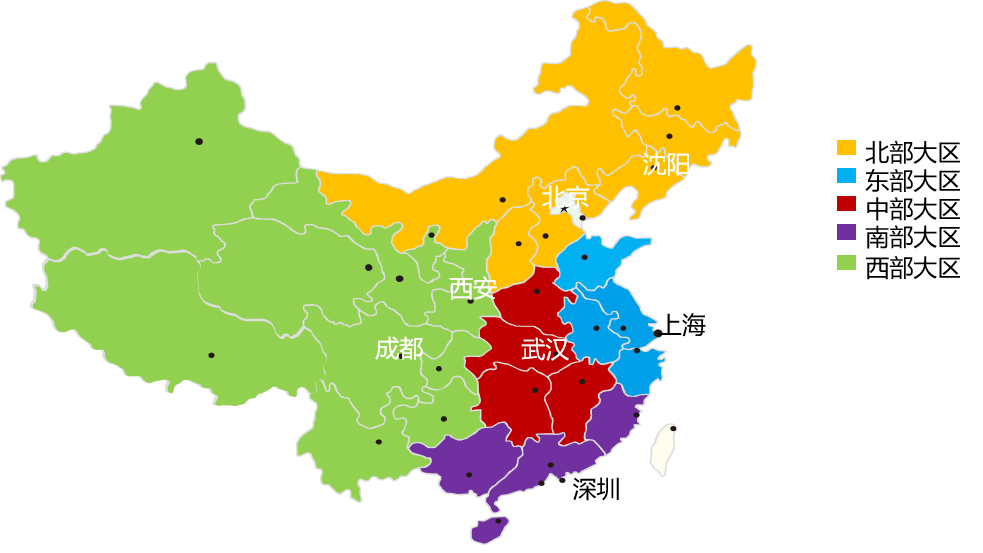 公司设立了五大片区,二十多个办事处,提供覆盖全国的营销和技术支持。